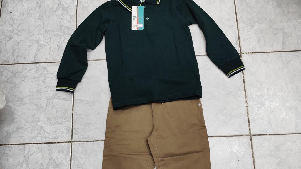 *Sweatshirt( uzun kollu thşört ) : Koyu yeşil ,yakası fıstık yeşili  ____  Pantolon: Krem rengi  pantolon